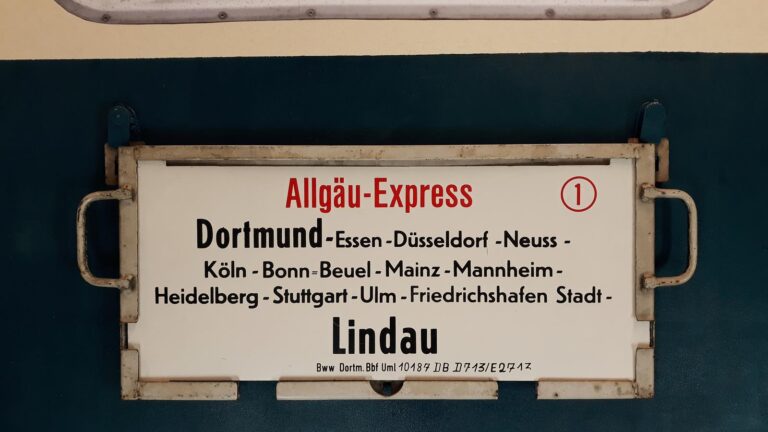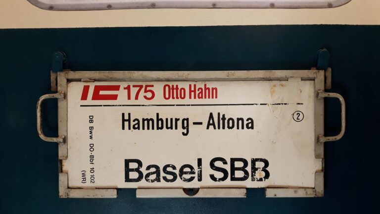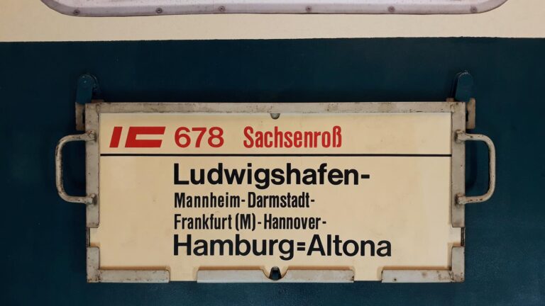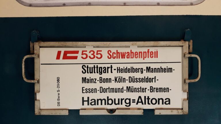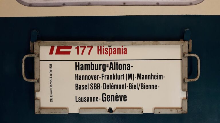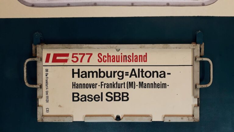 Den Startbahnhof “ Hamburg-Altona“ wurde mit einer Schablone aufgetragen,das Schild kommt ohne Unterwegsbahnhöfe auf der Strecke aus.