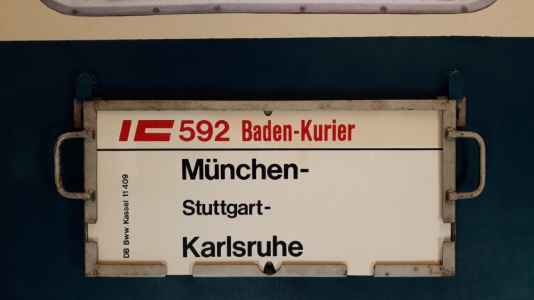 Der Wagen,der dieses Zuglaufschild führte,war die Fahrt schon in Karlsruhe beendet.