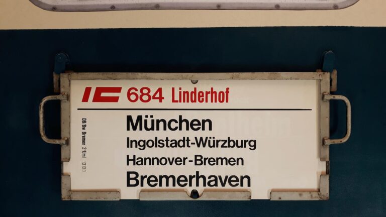 Bei diesem Zuglaufschild wurde Nürnberg und Augsburg handschriftlich aufgemalt.Not macht erfinderisch.
