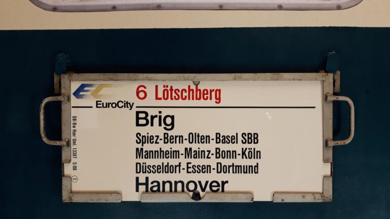 1987 startete die neue Marke des“ EuroCity“ und löste damit die Marke „TEE“ ab.Dieses Zuglaufschild ist aus dem Eröffnungsjahr und hat viele,viele Kilometer erlebt…
