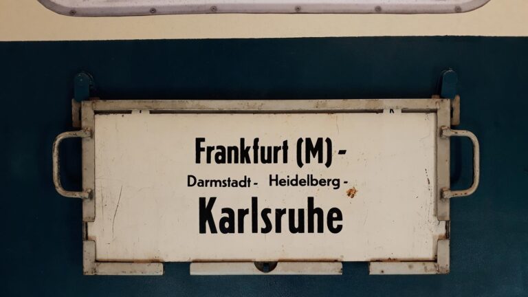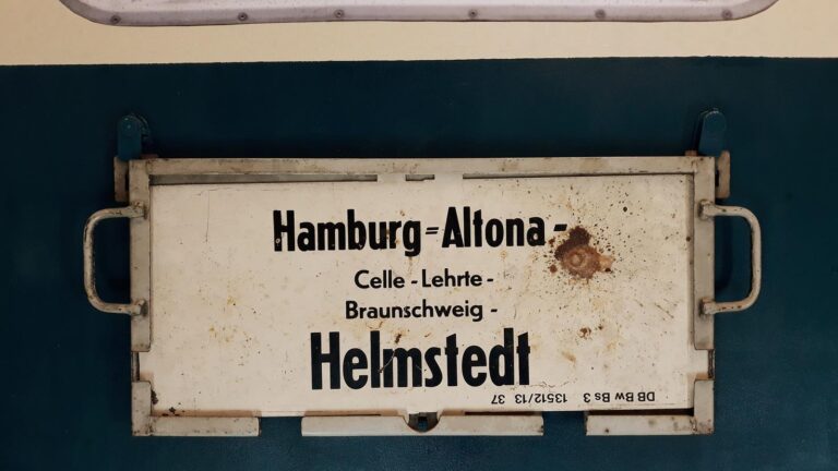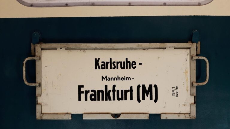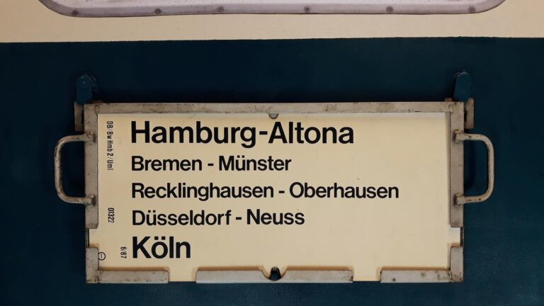 Dieses Zuglaufschild war einen Schild der Deutschen Reichsbahn und hat schon bessere Zeiten erlebt.