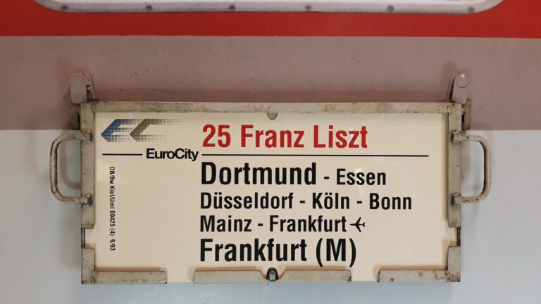 Der Wagen,der dieses Zuglaufschild führte wurde erst beim Fahrtrichtungswechsel in Frankfurt am Main ,an den aus Zürich kommenden Zug,angehängt.