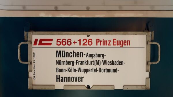 Nächster Zuglaufschild IC 566+126 Prinz Eugen München-Hannover