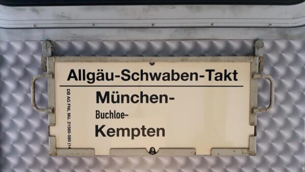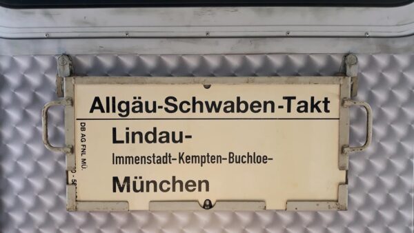 Allgäu-Schwaben-Takt Memmingen-München Startseite Zuglaufschilder Nahverkehr Allgäu-Schwaben-Takt Allgäu-Schwaben-Takt Memmingen-München Memmingen ist eine kreisfreie Stadt im bayerischen Regierungsbezirk Schwaben. Vorheriger Zuglaufschild RE 9 Rhein-Sieg-Express Krefeld-Düsseldorf Nächster Zuglaufschild Dessau-Leipzig
