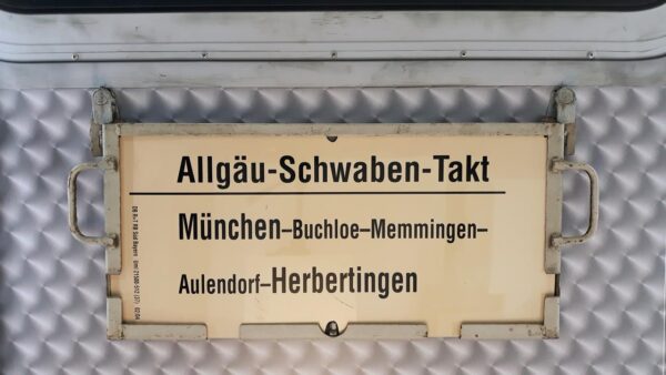Allgäu-Schwaben-Takt München-Memmingen Startseite Zuglaufschilder Nahverkehr Allgäu-Schwaben-Takt Allgäu-Schwaben-Takt München-Memmingen Der Bahnhof Memmingen ist eine seit 1862 bestehende Bahnstation. Vorheriger Zuglaufschild Ahrtalbahn Ahrweiler-Remagen Nächster Zuglaufschild Allgäu-Schwaben-Takt München-Herbertingen