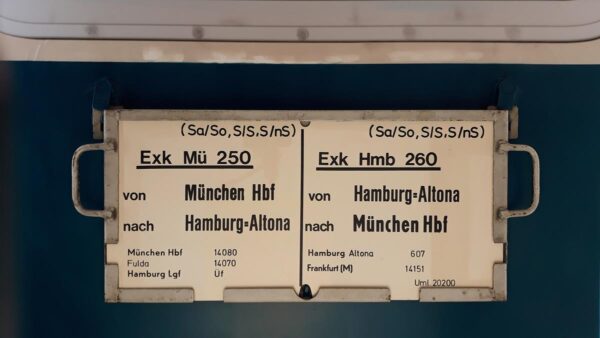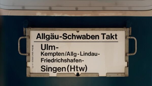 Kurios: bei diesem Zuglaufschild fehlt der Bindestrich zwischen dem Wort „Schwaben“ und „Takt“.