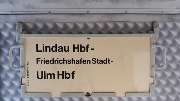 Aschaffenburg-Treuchtlingen Startseite Zuglaufschilder Nahverkehr Nahverkehrszüge Aschaffenburg-Treuchtlingen Ein Zuglaufschild aus dem Jahr 1999. Vorheriger Zuglaufschild RB Trebsen-Beucha Nächster Zuglaufschild Lindau Hbf-Ulm Hbf