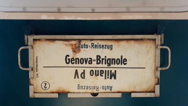 Trotz das auf dem Blechzuglaufschild viel Platz war,hattte man nur“ Milano PV“ aufgedruckt,schöner wäre gewesen „Milano Porta Nuova“aufzudrucken.