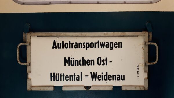 Dieses Schild wurde für einen Autoreisezug hergestellt,Die Autoverladeanlage München Ostbahnhof wurde 2025 komplett abgebaut und weicht der zweiten Stammstrecke.