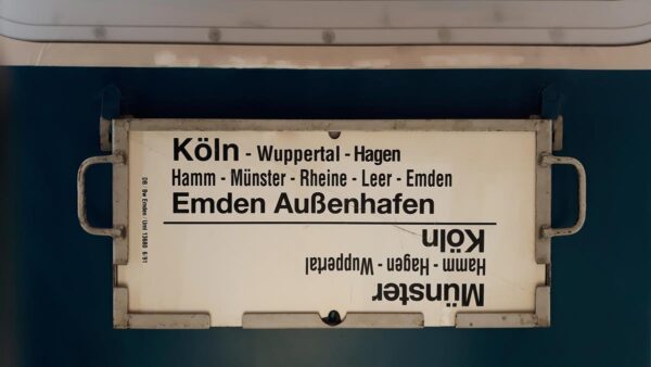Nächster Zuglaufschild Köln-Emden Außenhafen