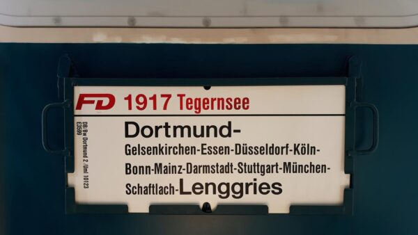 Berlin-Schöneweide-Chemnitz Startseite Zuglaufschilder Fernverkehr D-Züge lange Strecke Berlin-Schöneweide-Chemnitz Vorheriger Zuglaufschild Chemnitz-Berlin-Schöneweide Nächster Zuglaufschild FD 1917 Tegernsee Dortmund-Lenggries
