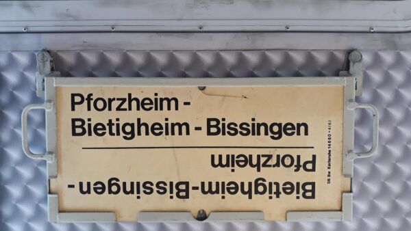 Mal so,mal so,man konnte sich bei der Schreibweise von Bietigheim-Bissingen nicht auf ein stringende Schreibweise mit Bindestrich festlegen.Denkbar ist nur,das der Bindestrich darauf schliessen lassen könnte,der Zuge würde in Bietigheim starten und über Bissingen nach Pforzheim fahren.