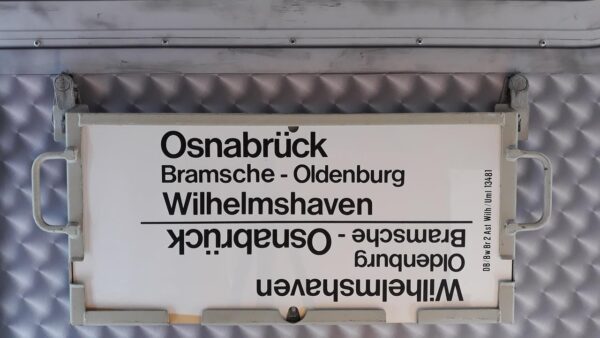 Braunschweig Startseite Zuglaufschilder Nahverkehr Nahverkehrszüge Braunschweig Dieser Zug wurde vom Betriebswerk Kassel gestellt. Vorheriger Zuglaufschild Osnabrück-Wilhelmshaven Nächster Zuglaufschild Bebra