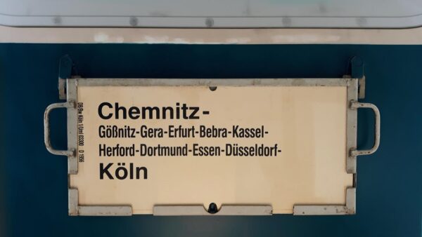 Vorheriger Zuglaufschild Chemnitz-Köln
