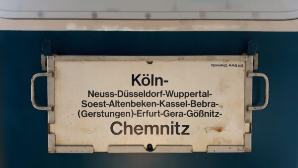 Chemnitz-Köln Startseite Zuglaufschilder Fernverkehr D-Züge lange Strecke Chemnitz-Köln Vorheriger Zuglaufschild IC 544 Ehrenbreitstein Hannover-Koblenz Nächster Zuglaufschild Ulm Hbf-Neustadt(Schwarzw)