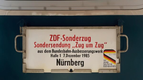 Nächster Zuglaufschild ZDF-Sonderzug Sondersendung"Zug um Zug" 7.12.1985 Nürnberg