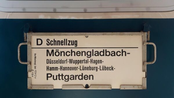 Startseite Zuglaufschilder Fernverkehr D 1842 Schnellzug Puttgarden-Mönchengladbach