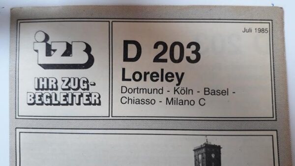 IZB D 203 Loreley Amsterdam-Mailand Startseite Zuglaufschilder Besonderheiten Zugbegleiter Faltblatt vorhanden IZB D 203 Loreley Amsterdam-Mailand Vorheriger Zuglaufschild IZB D 203 Loreley Dortmund-Mailand Nächster Zuglaufschild IZB IC 501 Rheinblitz Hannover-Basel