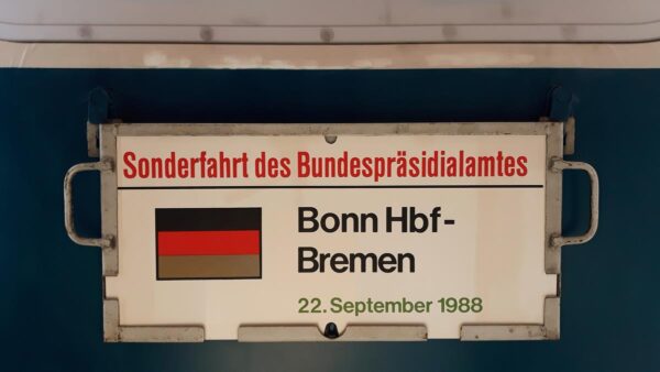 1977 wurde der Wagen des D 216 „Austria-Express“ erst in Salzburg an den aus Klagenfurt kommenden Zug angehängt.In Krefeld wurde dieser Wagen wieder vom Hauptzug getrennt,bevor er nach Amsterdam CS weiter fuhr. Dieses Zuglaufschild ist nicht aus Kunststoff sondern aus Blech.