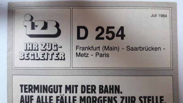 IZB D 262 Orient-Express Bukarest-Paris Startseite Zuglaufschilder Besonderheiten Zugbegleiter Faltblatt vorhanden IZB D 262 Orient-Express Bukarest-Paris Vorheriger Zuglaufschild IZB D 263 Orient-Express Paris-Bukarest Nächster Zuglaufschild IZB D 254 Frankfurt(M)-Paris