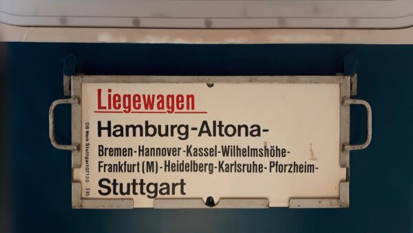 Während 1985 der Hauptzug ab Duisburg weiter nach Ventimiglia fuhr,war für den Wagen,der dieses Zuglaufschild führte um 00.43 Uhr in Basel Bad Bf die Fahrt zu Ende.