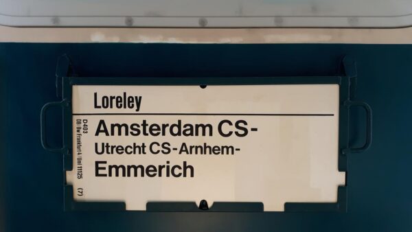 Ein Zuglaufschaufschild für den D 402 als Verstärkungswagen ab Emmerich …Gestellt wurde dieser Waggon vom Betriebswerk Frankfurt 4.