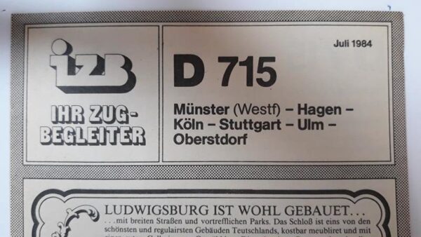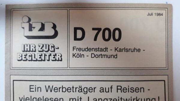 IZB D 701 Dortmund-Freudenstadt Startseite Zuglaufschilder Besonderheiten Zugbegleiter Faltblatt vorhanden IZB D 701 Dortmund-Freudenstadt Vorheriger Zuglaufschild IZB D 715 Münster(Westf.)-Oberstorf Nächster Zuglaufschild IZB D 700 Freudenstadt-Dortmund