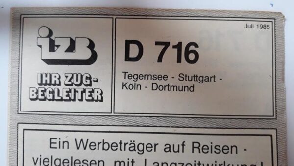 IZB D 715 Münster(Westf.)-Oberstorf Startseite Zuglaufschilder Besonderheiten Zugbegleiter Faltblatt vorhanden IZB D 715 Münster(Westf.)-Oberstorf Vorheriger Zuglaufschild IZB D 716 Tegernsee-Dortmund Nächster Zuglaufschild IZB D 701 Dortmund-Freudenstadt
