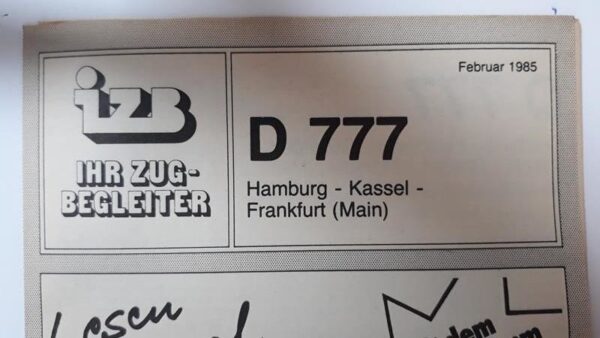 IZB D 786 München-Bremen Startseite Zuglaufschilder Besonderheiten Zugbegleiter Faltblatt vorhanden IZB D 786 München-Bremen Vorheriger Zuglaufschild IZB D 787 Bremen-München Nächster Zuglaufschild IZB D 777 Hamburg-Frankfurt(M)