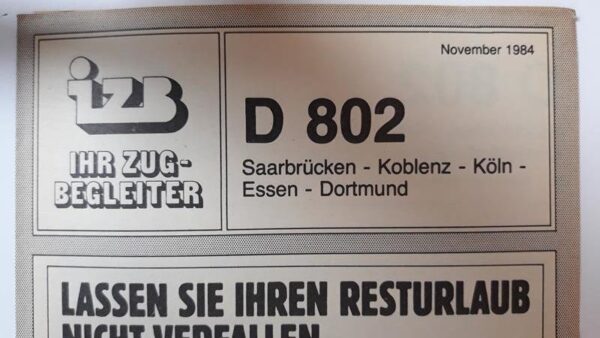 Startseite Zuglaufschilder Besonderheiten Zugbegleiter Faltblatt vorhanden IZB D 803 Dortmund-Saarbrücken