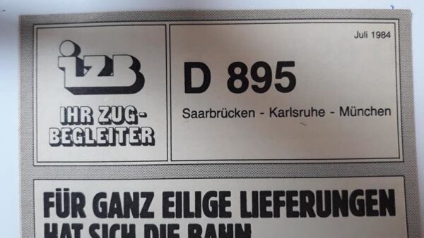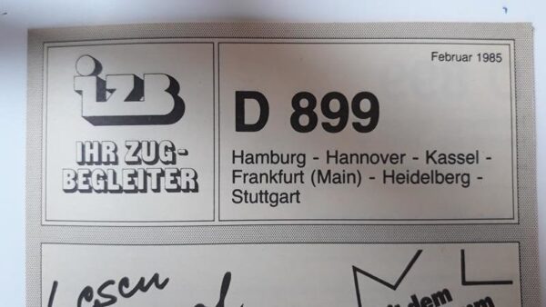 Startseite Zuglaufschilder Besonderheiten Zugbegleiter Faltblatt vorhanden IZB D 898 Stuttgart-Kiel