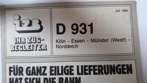 Startseite Zuglaufschilder Besonderheiten Zugbegleiter Faltblatt vorhanden IZB D 934 Norddeich-Köln