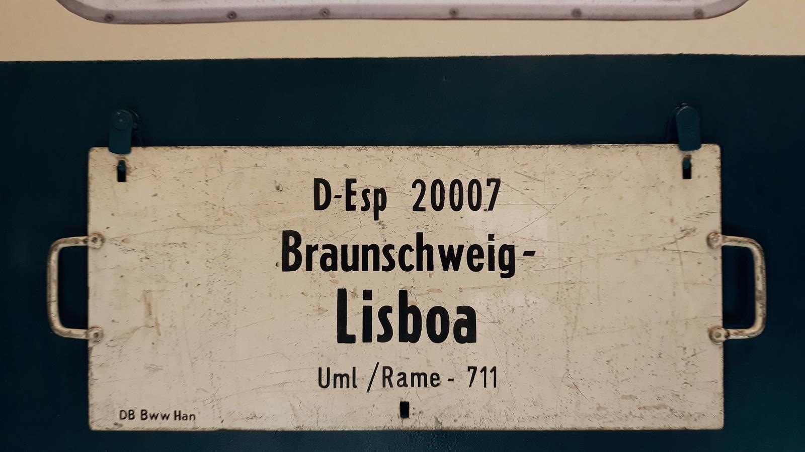D-Esp 2007 Braunschweig-Lisboa Startseite Zuglaufschilder Fernverkehr D-Züge lange Strecke D-Esp 2007 Braunschweig-Lisboa Das Bww Hannover stellte diesen Gastarbeiterzug. Vorheriger Zuglaufschild Sonderzug zum Christkindles Markt nach Nürnberg Nächster Zuglaufschild Umlaufschild für Postsortierung