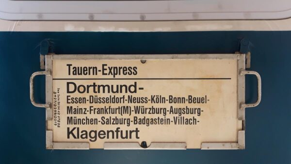 Das Betriebswerk Lübeck stellte den Wagen,der dieses Zuglaufschild führte,ganz unbahnamtlich fehlt beim Zielbahnhof Hamm der Zusatz “ Hamm(W) = Hamm in Westfalen.