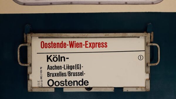 Dieses Schild wurde für den D 225 nach Wien verwendet,der aber sogar den Namen“ Oostende-Wien-Express“trug,der aber auf diesem Schild nicht aufgedruckt ist.