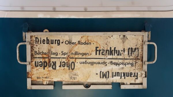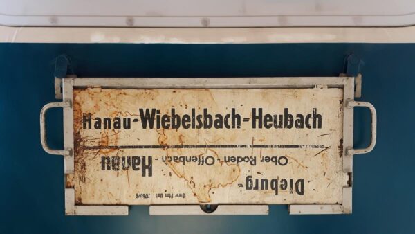 Dieburg-Hanau Startseite Zuglaufschilder Nahverkehr Vier Ziele auf einem Schild Dieburg-Hanau Wind und Wetter haben das Blechschild dreckig und unansehnlich werden lassen. Vorheriger Zuglaufschild Hanau-Wiebelsbach=Heubach Nächster Zuglaufschild Dieburg-Frankfurt(M)