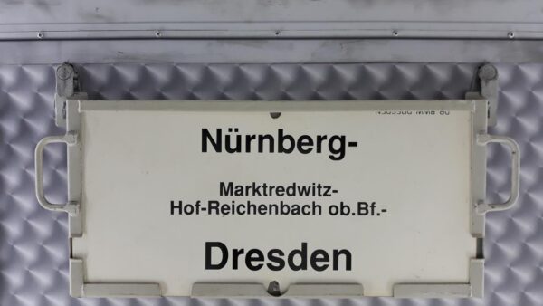 Dresden-Nürnberg Startseite Zuglaufschilder Nahverkehr Nahverkehrszüge Dresden-Nürnberg Vorheriger Zuglaufschild Elsterwerda-Elsterwerda-Biehla-Elsterwerda Nächster Zuglaufschild Nürnberg-Dresden