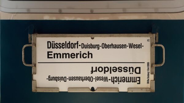 Emmerich-Wesel Startseite Zuglaufschilder Nahverkehr Nahverkehrszüge Emmerich-Wesel Das Betriebswerk Duisburg 1 stellte diesen Zug. Vorheriger Zuglaufschild Düsseldorf-Emmerich Nächster Zuglaufschild Aachen-Dortmund