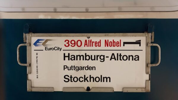 Vorheriger Zuglaufschild EuroCity 390 Alfred Nobel Hamburg-Altona-Stockholm