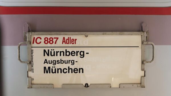 Der Wagen,der 1991 dieses Zuglaufschild führte,begleitete den Gesamtzug nur bis Nürnberg Hbf.