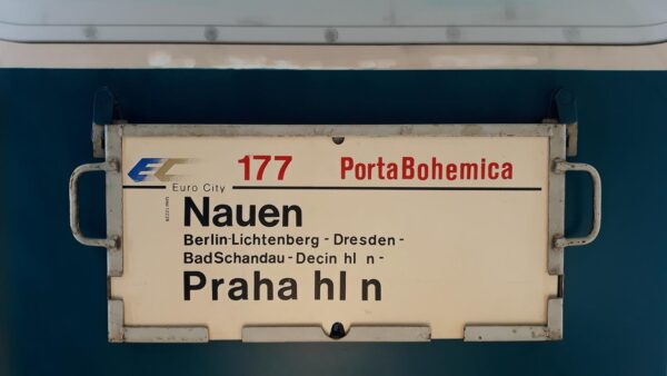 Der Zug fährt von Prag/Holesvice nach Nauen- ein ungewöhnlicher Zielbahnhof.