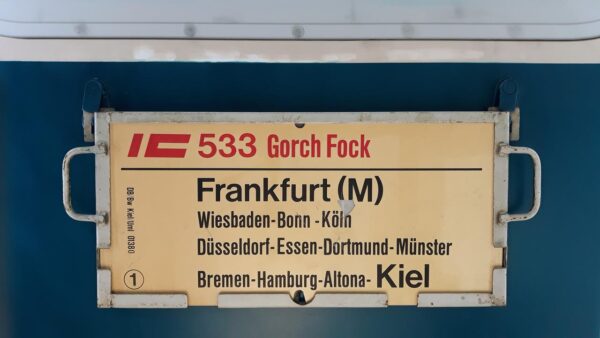 Vorheriger Zuglaufschild IC 533 Gorch Fock Frankfurt(M)-Kiel