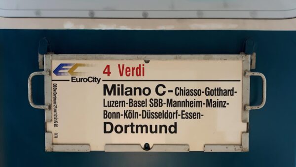 Nächster Zuglaufschild EuroCity 4 Verdi Milano-Dortmund