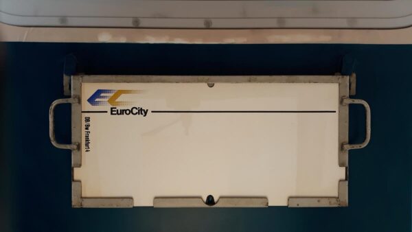 Während 1987 der Hauptzug des EuroCity 3 „Rembrandt“ aus Amsterdam CS in die Schweiz fuhr,wurde der Wagen,der dieses Zuglaufschild erst in Emmerich angehängt,der erst Halt auf deutschem Boden.
