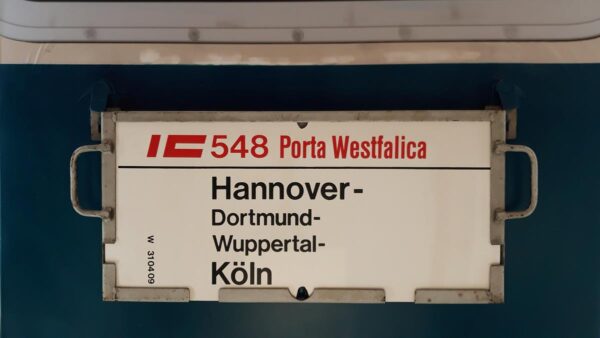 Dieses Schild zeigt 1987 einen Liegewagen als Kurswagen der aus Oslo kam und nach Hamburg-Altona fuhr. Ankunft in Hamburg Altona um 8.46 Uhr.Der EuroCity Hauptzug verband Stockholm mit Hamburg.