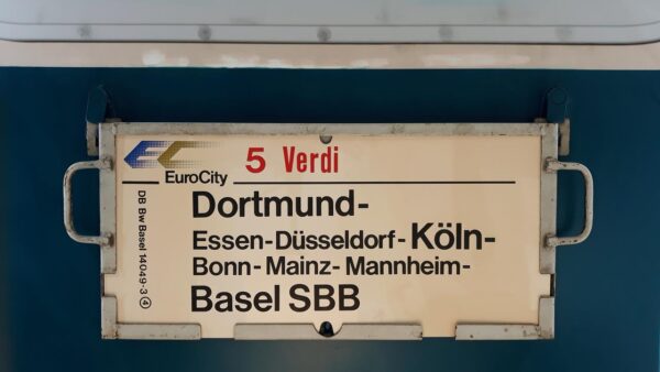 Vorheriger Zuglaufschild EuroCity 5 Verdi Dortmund-Basel SBB