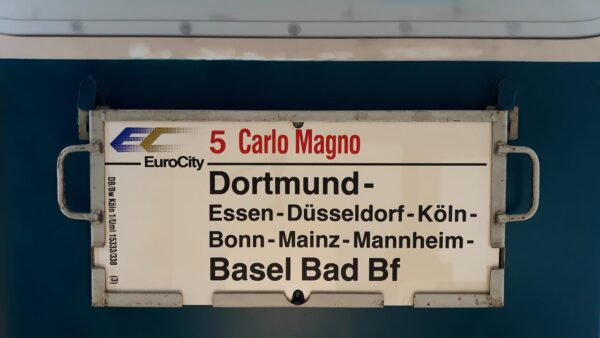 Nächster Zuglaufschild EuroCity 5 Carlo Magno Dortmund-Basel Bad Bf