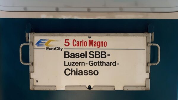 Im Fahrplanjahr 1987/88 begleitete der Waggon der dieses Zuglaufschild führte den Gesamtzug nach Sestri Levante nur bis Basel SBB,wo seine Fahrt um 11.43 Uhr schon zu Ende war.