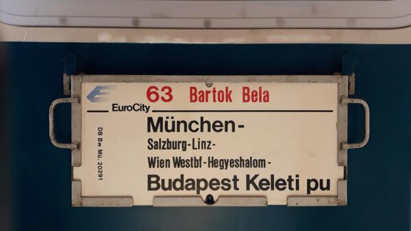 Nächster Zuglaufschild EuroCity 63 Bartok Bela München-Budapest