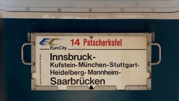 Vorheriger Zuglaufschild EuroCity 14 Patscherkofel Innsbruck-Saarbrücken